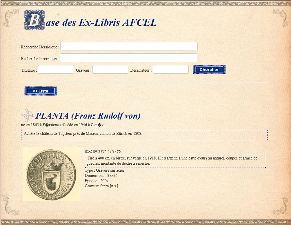 EX-LIBRIS de Franz Rudolf von PLANTA