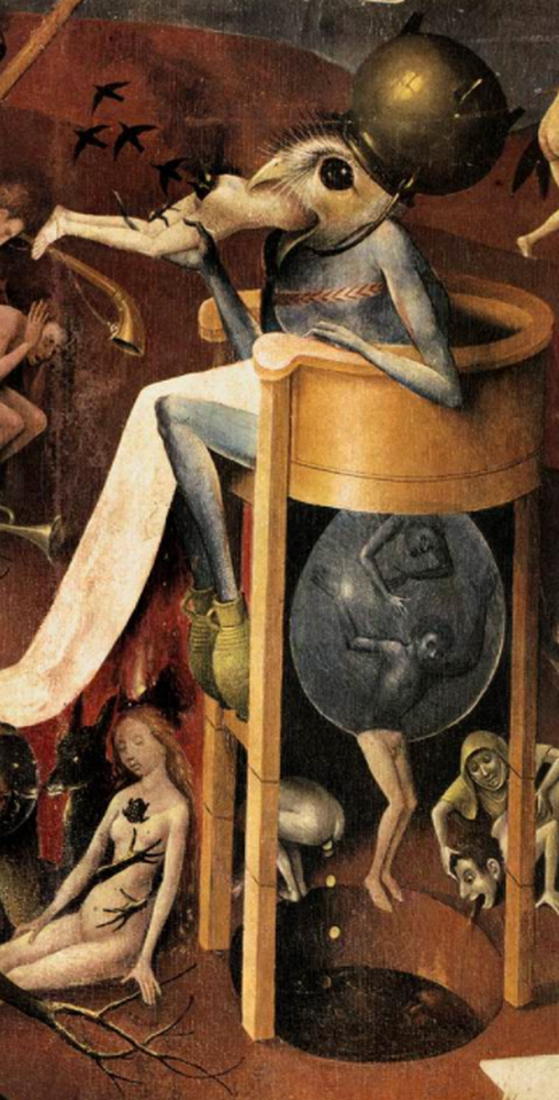 Illustrations qui, au lieu d’apporter un quelconque éclairage, inversent toutes les perceptions que nous avons de la vie et des choses. C’est comme si l’on voyait du mauvais côté des jumelles. Ce sont des détails tirés du célèbre tableau de Jérôme Bosch à trois panneaux « Le jardins des délices». L’auteur a choisi le panneau du centre qui représente le paradis terrestre où les animaux et les hommes vivent en harmonie. Une harmonie démoniaque, soutiennent ceux qui n’y voient que sexe, sodomie et perversion.