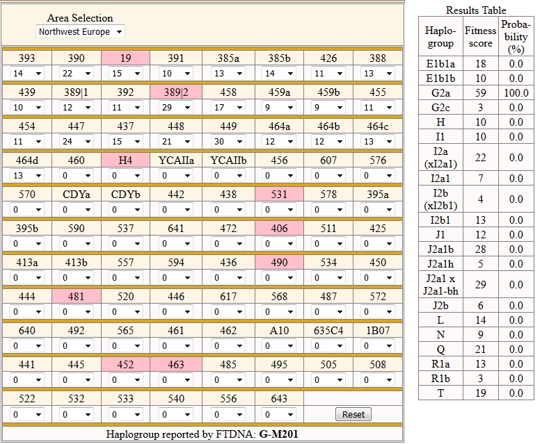 Le 9 octobre 2016, j’annonçais à mes lecteurs que j’avais reçu les résultats de mon analyse ADN-Y (25 marqueurs) commandée auprès de l’entreprise américaine Family Tree DNA. Celle-ci a été couplée avec une analyse ADN autosomal. Cette analyse génétique confirmait hors de tout doute possible que mon chromosome Y relève précisément de l’haplogroupe G-M201.