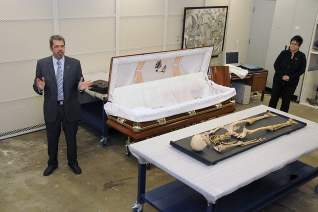 En 1966, sa dépouille est exhumée du cimetière de La Malbaie par Jean-Claude Larouche, un étudiant de premier cycle en éducation physique, afin de l’examiner. Larouche confirme sans le secours utile de ces os qu’un entraînement soutenu du Trotteur avait pu faire du Trotteur un véritable athlète. Son squelette sera confié au Musée du Saguenay-Lac-Saint-Jean à Chicoutimi puis transporté, avec le reste des collections du musée à sa fermeture, au musée de la Pulperie de Chicoutimi.