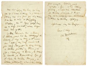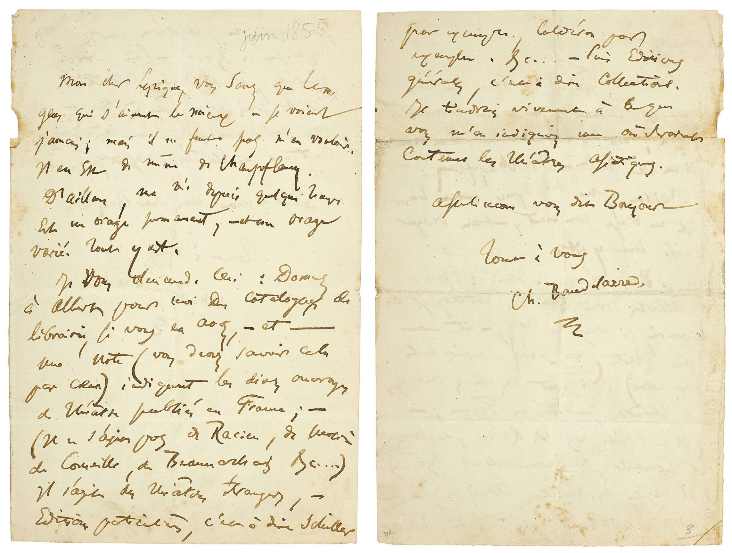 Lettre autographe signée par Charles Baudelaire à Philoxène Boyer. [Paris, fin juin 1855]