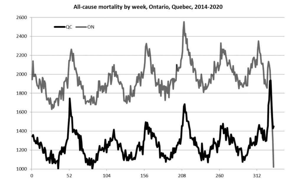 Selon les calculs des auteurs, ces mesures ont provoqué environ 30 200 décès en France en mars et avril 2020. Cependant, même en incluant le « pic-COVID », la charge hivernale de mortalité toutes causes confondues pour l’hiver 2019-2020 n’est pas statistiquement supérieure aux charges hivernales habituelles, ce qui permet d’affirmer que le SARS-CoV-2 n’est pas un virus responsable de maladies respiratoires inhabituellement virulent.