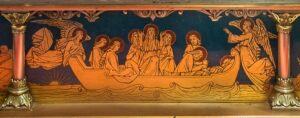 Relique présumée (tibia) de Marie-Madeleine – Détail du reliquaire de Sainte-Baume dans le Var, où l’on voit Marie-​​Madeleine transportant un corps