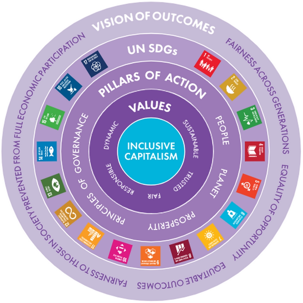 On lit sur le site Web de l’organisation : « Le Conseil est déterminé à agir. Il recherche un changement réel et durable pour le bien. Les organisations membres adopteront chacune une approche différente pour mettre en œuvre les Principes pour le capitalisme inclusif, mais chacune s’engage à promouvoir des économies durables, inclusives, fortes et fiables dans le monde entier. (…) Cela comprend une nouvelle amélioration des mesures environnementales, sociales et de gouvernance dans nos opérations quotidiennes alors que nous contribuons à atteindre les objectifs de développement durable des Nations Unies. »