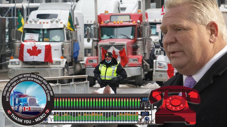 La volte-face dramatique de Doug Ford survient alors que des milliers de camionneurs à travers le Canada se sont engagés dans des manifestations pacifiques, notamment en bloquant le pont Ambassador entre Detroit et Windsor. Doug Ford, le premier ministre de l’Ontario en difficulté, a téléphoné jeudi à ses partisans pour leur faire savoir qu’il annoncera vendredi qu’il abandonne le programme de passeport vaccinal de la province et qu’il fournira plus de détails lundi. Un partisan a enregistré l’appel qui a été transmis à Rebel News.