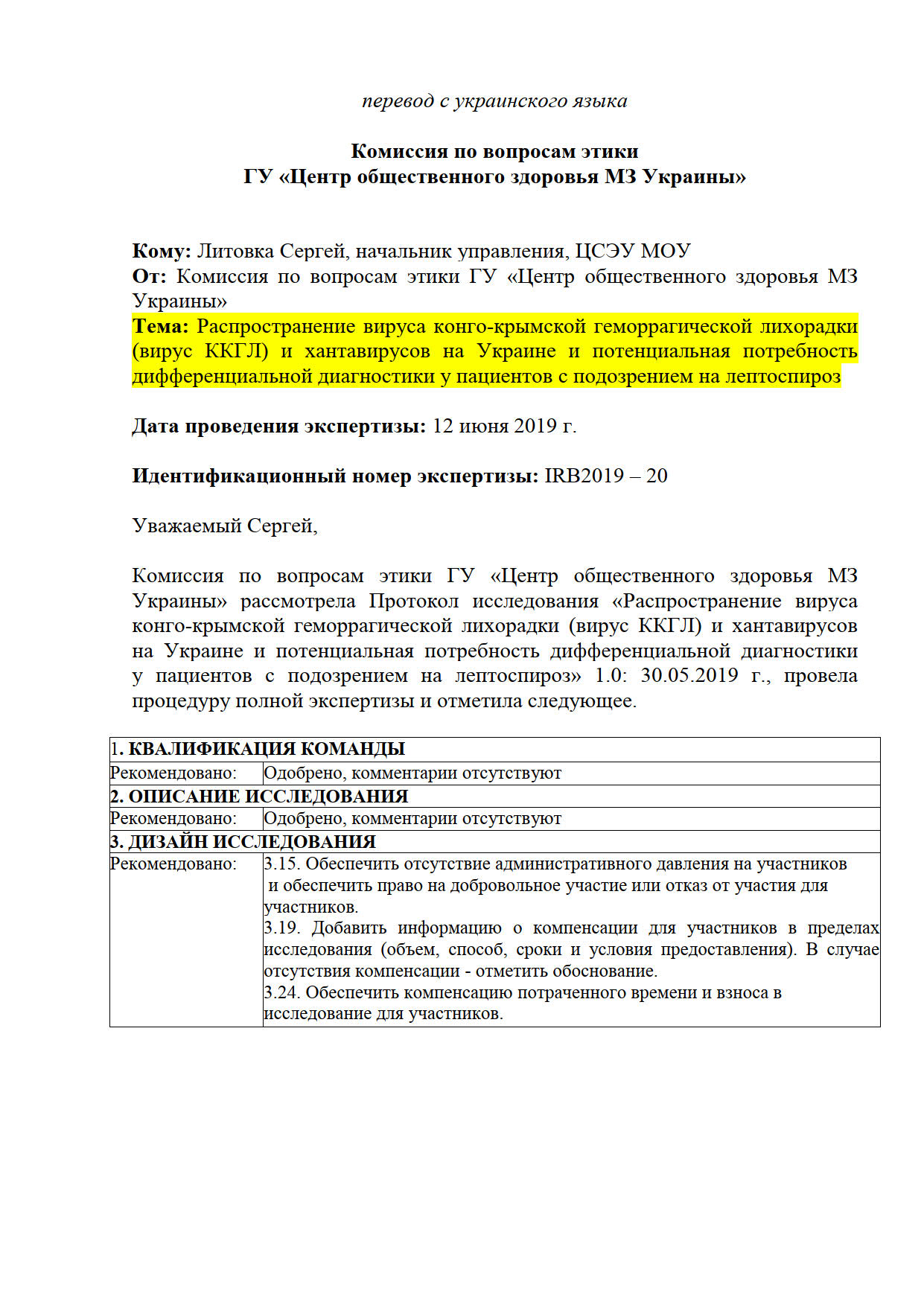 Veuillez prêter attention à la décision signée par le responsable du comité d’éthique de ce centre le 12 juin 2019 dans le cadre du projet UP-8. Le document témoigne de la conduite d’études avec un risque inconnu pour la vie et la santé des participants, ainsi que de la dissimulation de l’identité des sujets.