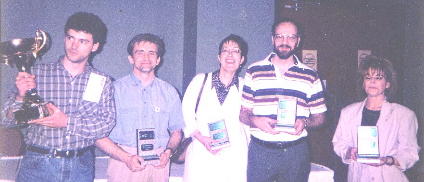 Les vainqueurs du Championnat du Québec 1995, de premier au cinquième – François Bédard, Germain Boulianne, Marielle Gingras, Mario Buteau et Hélène Levasseur.