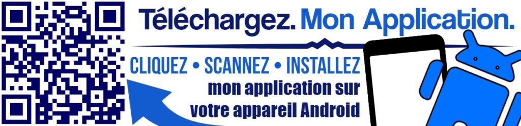 Je vous invite à télécharger tout à fait gratuitement ma toute nouvelle application Android, en numérisant simplement le QR code se trouvant ci-dessous. Si vous appréciez mes articles et le travail de rédaction que je fais presque quotidiennement, vous pourrez ainsi suivre mes actualités sur votre téléphone, votre tablette ou tout autre appareil mobile, ceci où que vous soyez lors de vos déplacements. Vous recevrez des alertes en temps réel pour tout nouvel article qui sera fraîchement publié. L’application Android a été conçue de telle sorte que vous puissiez vous y retrouver facilement. Le menu interactif qui est affiché très clairement sur la page d’accueil vous permettra d’accéder aux différentes sections de façon intuitive.