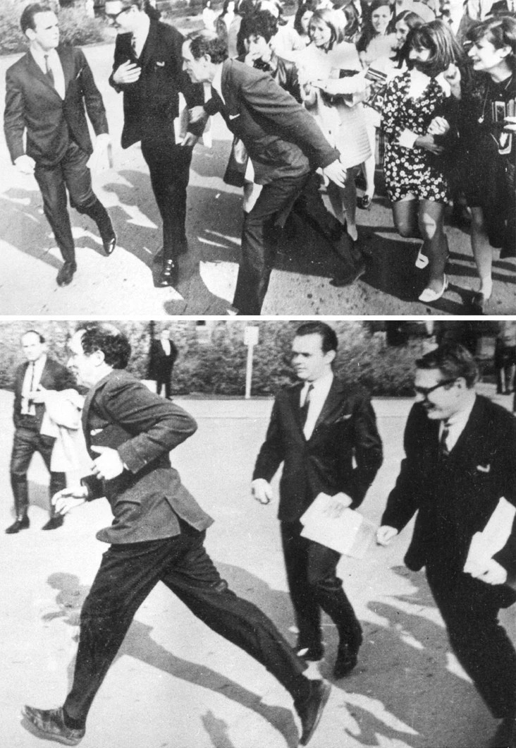 Le 24 juin, à Montréal, le défilé de la Saint Jean-Baptiste est troublé par les militants du RIN, certainement infiltrés par des agitateurs mercenaires qui lancent des bouteilles vers la tribune des officiels. Tandis que ceux-ci, apeurés, s’enfuient ou se cachent sous les chaises, Trudeau, stoïque, reste de marbre… sachant probablement qu’aucun projectile ne l’atteindra. Cette scène opportunément retransmise par la télévision achève de faire de lui l’homme fort du Canada.