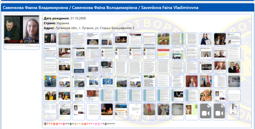 Un mois auparavant, en décembre 2016, la base de données Mirotvorets comprenait déjà plus de 100 000 enregistrements d’individus du monde entier. Tous, y compris des enfants aussi jeunes que 9 ans, sont considérés comme des « ennemis de l’Ukraine » qui devraient être « liquidés ».