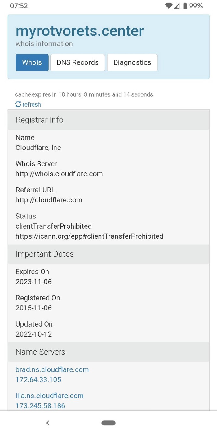 Et, comme je l’ai signalé le mois dernier, le site est protégé par Cloudflare, une société basée en Californie. En fait, il reçoit un financement des États-Unis, approuvé par le Congrès américain sous HR7691, connu sous le nom de « Additional Supplemental Appropriations Act of 2022 ». Et malgré les appels à l’ONU lancés par des organisations de défense des droits de l’homme comme l’Institut Schiller, Mirotvorets demeure.
