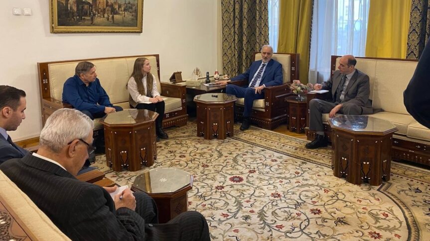 La lettre a été présentée à Faïna le 6 décembre 2022 à l’ambassade de Syrie à Moscou, où elle et son co-auteur, Alexander Kontorovich, ont rencontré l’ambassadeur de Syrie en Russie, Bachar al-Jafari.