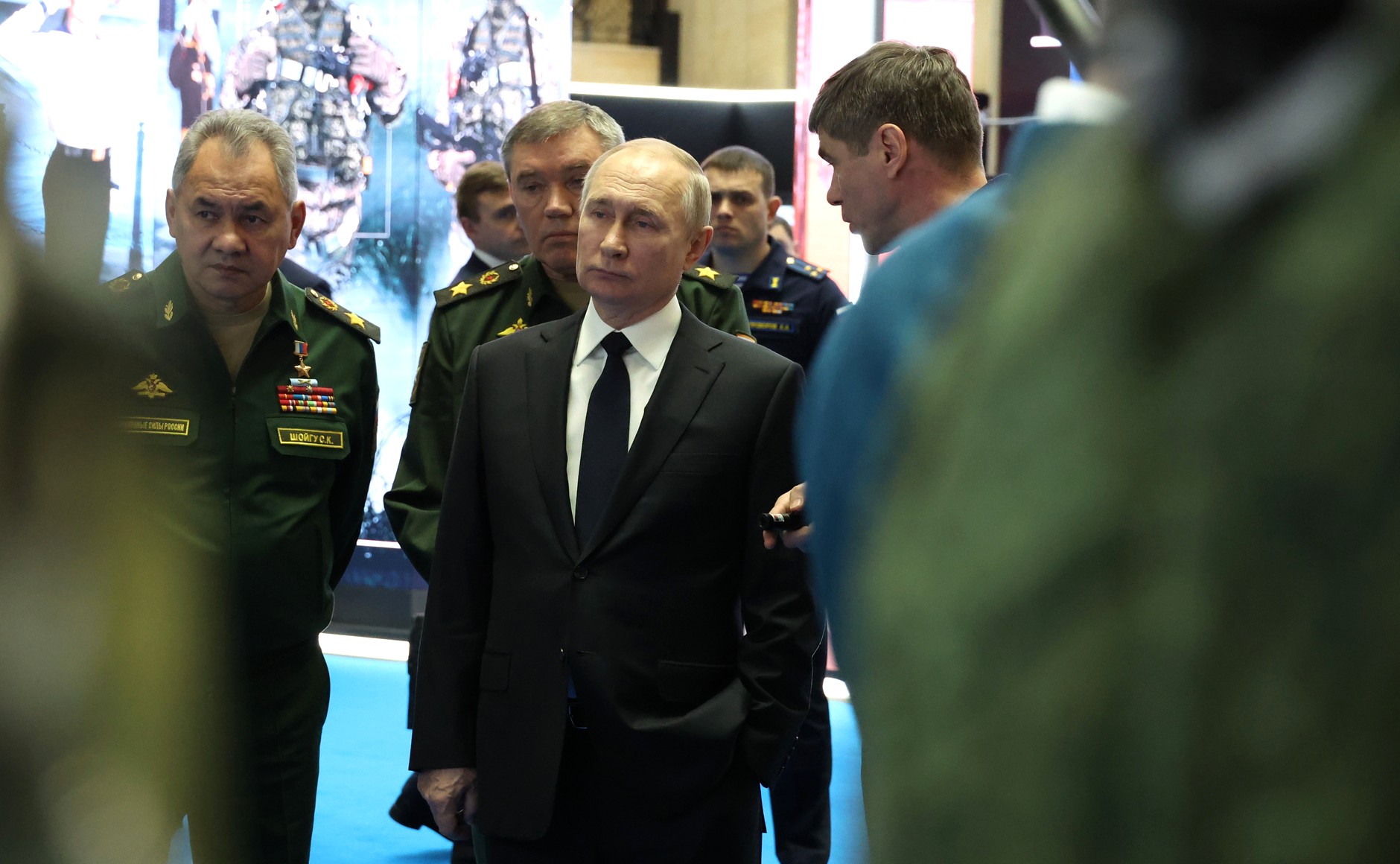 Avant le début de la réunion, le président a visité une exposition de modèles modernes et prometteurs d'équipements, d'armes, de munitions et de moyens de protection des types et des branches de troupes. Le chef de l'Etat était accompagné du ministre de la Défense Sergueï Choïgou et du chef d'état-major des forces armées Valéry Gerasimov. L'exposition est présentée dans l'atrium du National Defense Control Center.