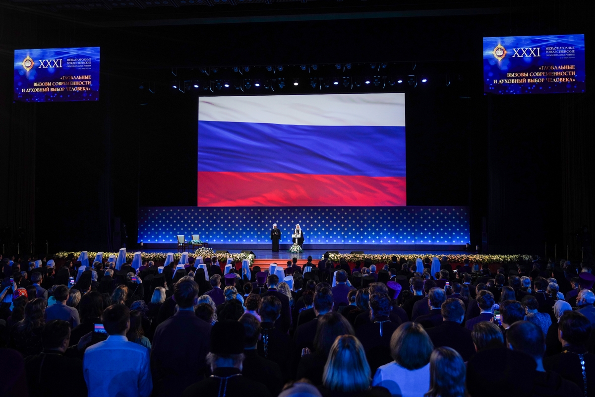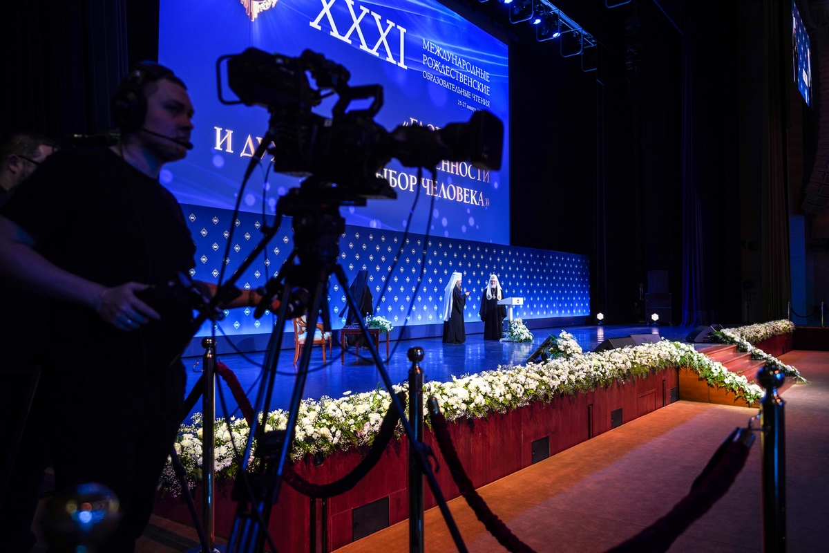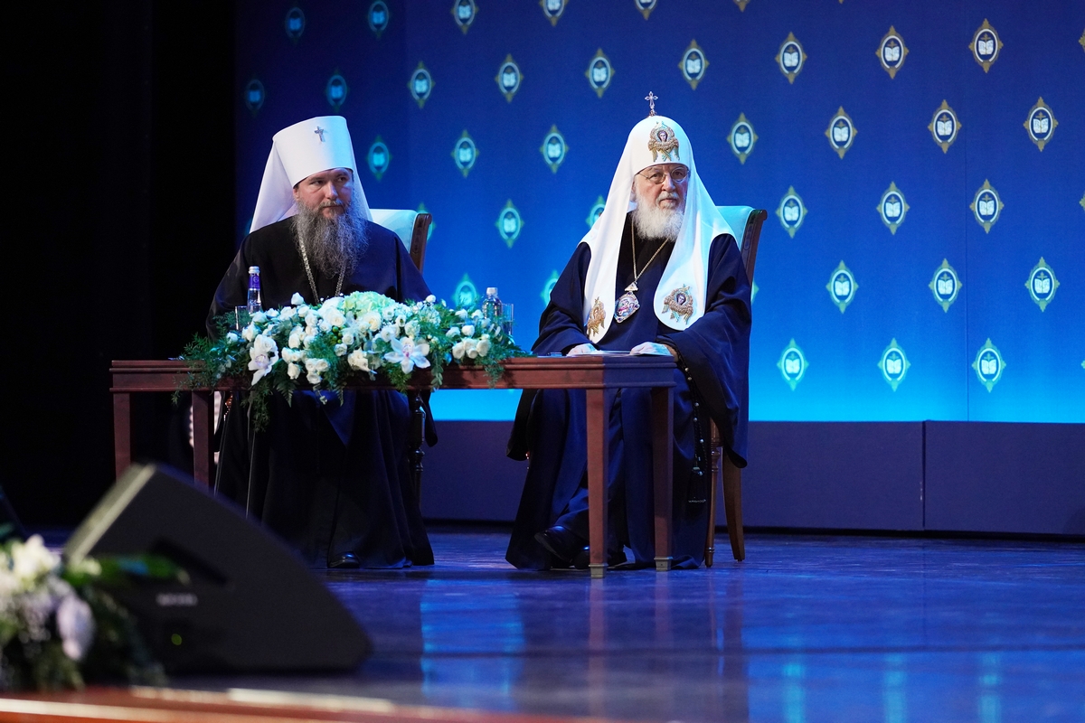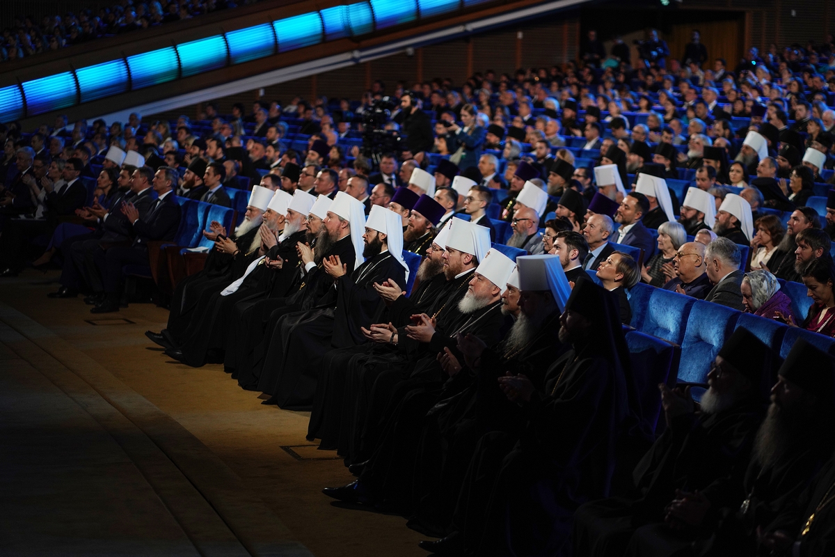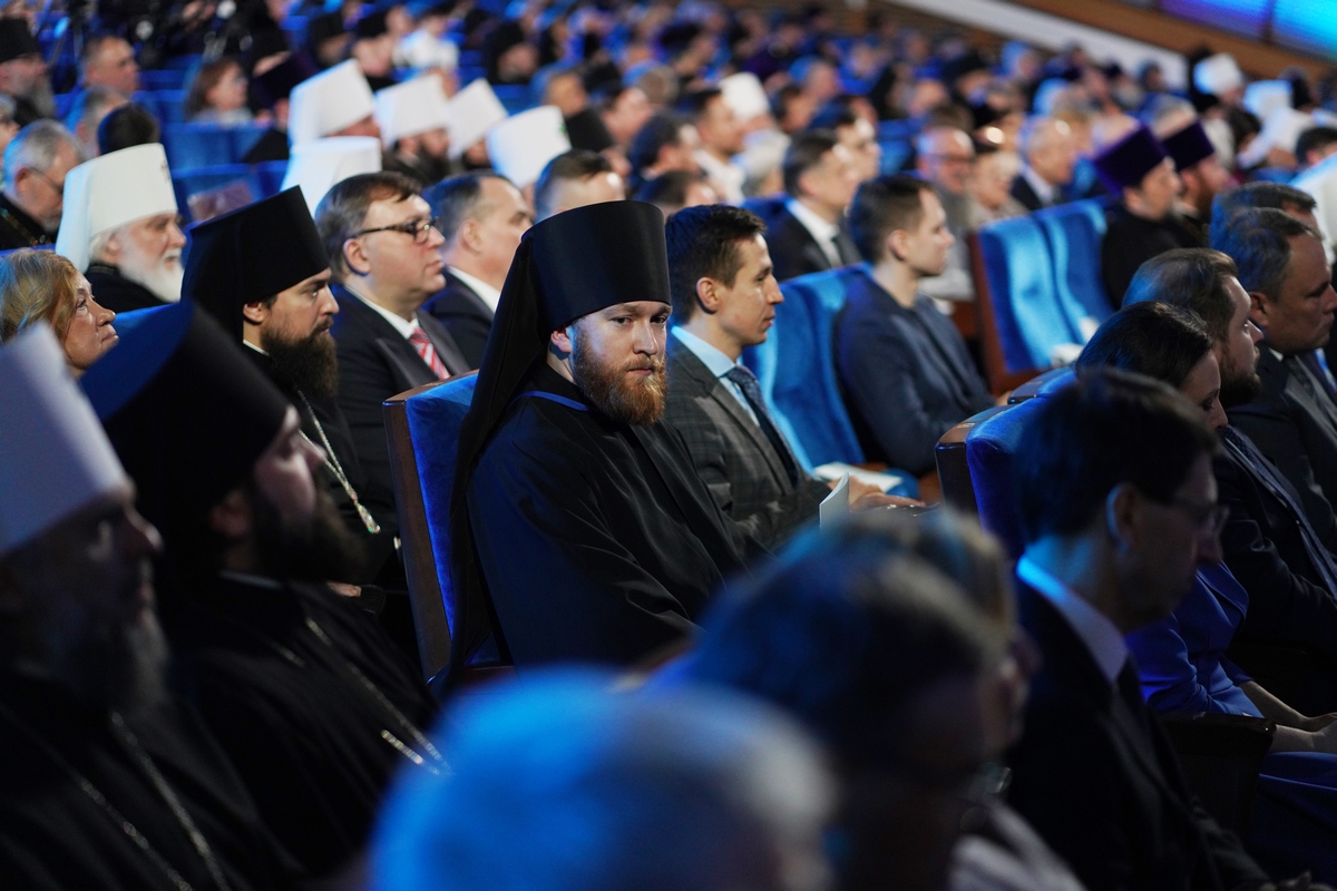 Plus de 5 000 personnes se sont rassemblées dans la salle : Sa Grâce archipasteurs – membres du Saint-Synode et du Conseil suprême de l’Église, chefs de métropoles, évêques diocésains de l’Église orthodoxe russe, représentants des Églises orthodoxes locales, membres du Conseil interreligieux de Russie, membres du Comité d’organisation des Lectures éducatives internationales de Noël, représentants plénipotentiaires du Président de la Fédération de Russie dans les districts fédéraux, chefs des services fédéraux de la Fédération de Russie, chefs et représentants des autorités fédérales et régionales, recteurs et représentants d’environ 250 Universités russes et étrangères, chefs d’établissements d’enseignement.