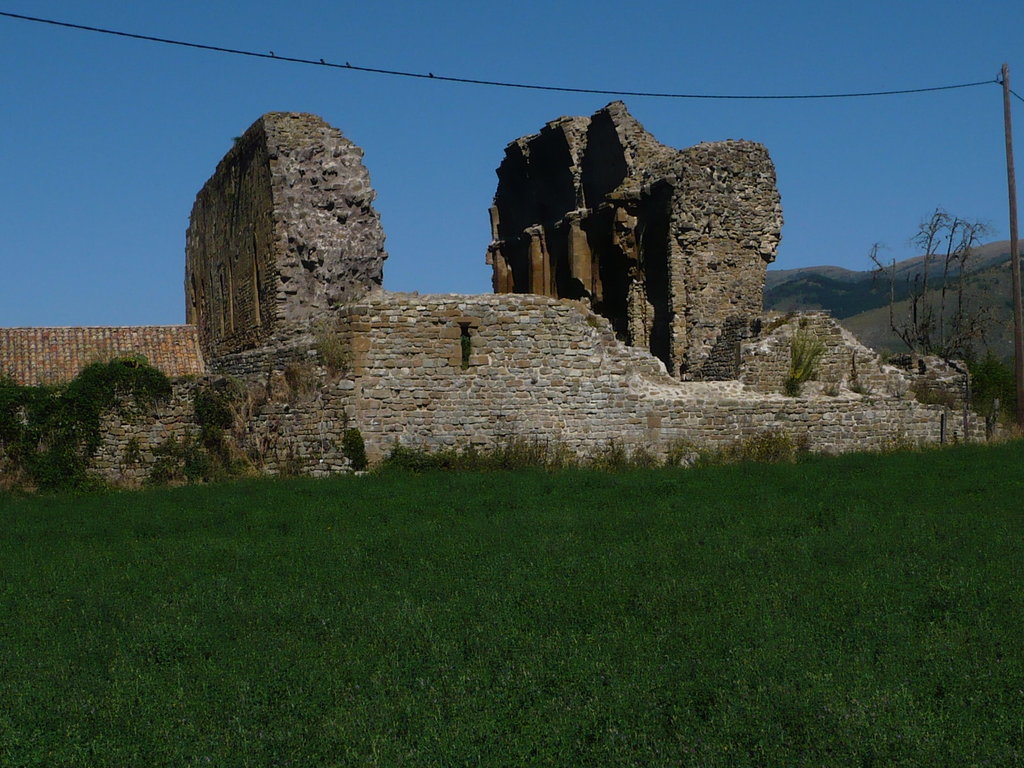 Surmontée sans doute d’un campanile, la travée du chœur est séparée des chapelles latérales par deux murs épais. Le sol de l’abside comme celui de la travée est recouvert d’un pavement de mosaïque polychrome remarquable (emploi de calcaire blanc, calcaire beige, marbre bleuté de réemploi, brique rouge et calcschiste noir). Le pavement de l’abside en particulier représente des animaux et des figures géométriques, avec des motifs tressés entourant l’ensemble. On y voit un éléphant aux pieds empruntés à ceux d’un bovidé, portant une enceinte fortifiée avec tours et devant l’autel, quatre félins en opposition deux à deux. Reste la chapelle sud du prieuré. Probablement la mieux conservée de cet ensemble monastique comprenant une travée rectangulaire et une absidiole.