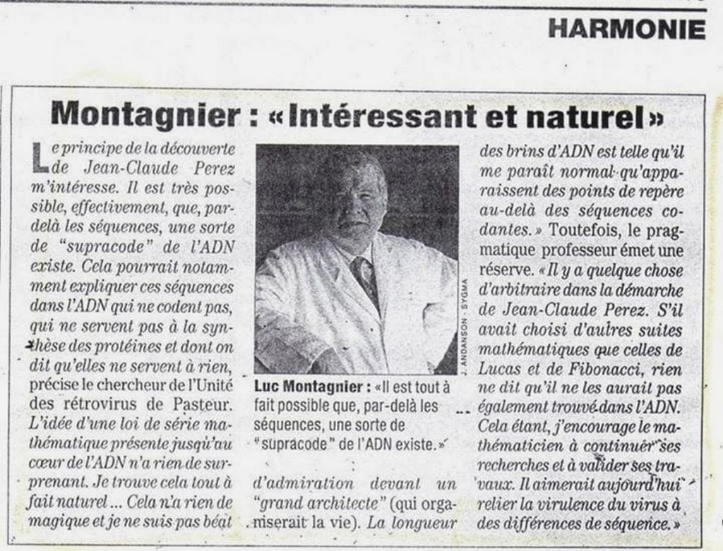 « ../… le principe de la découverte de Jean-Claude Perez m’intéresse, il est très possible que par delà les séquences, une sorte de « supracode de l’ADN » existe…/… »