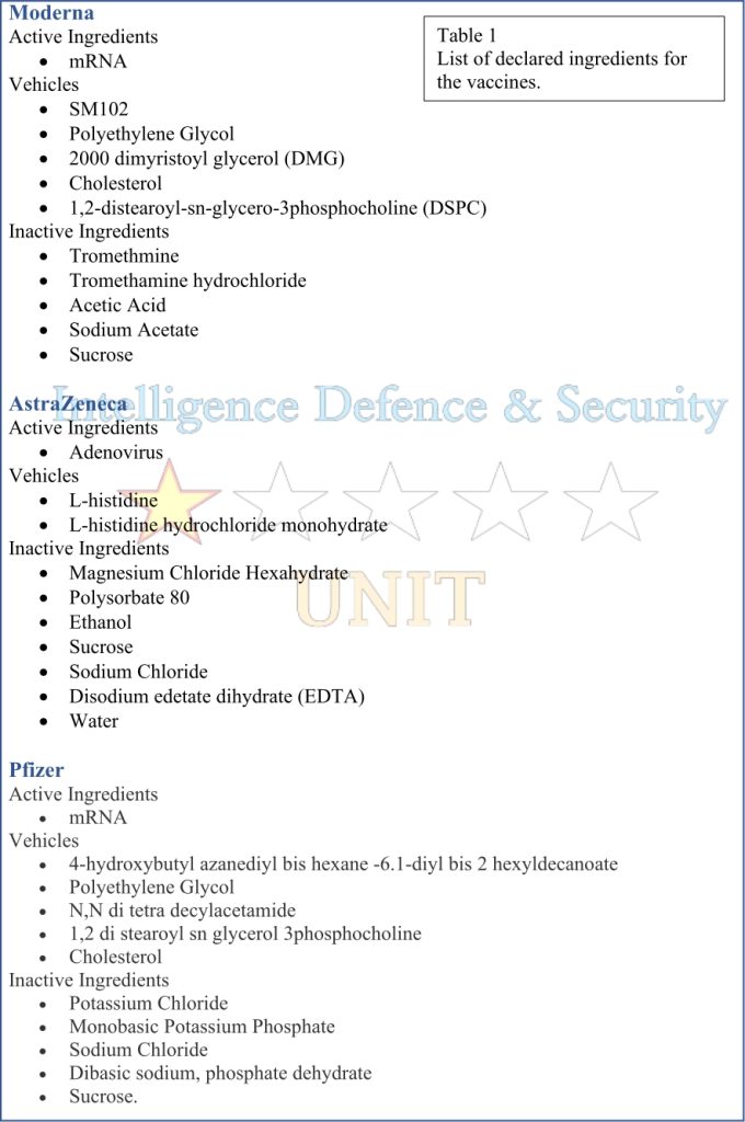 Le rapport intitulé « Évaluation qualitative des inclusions dans les vaccins Moderna, AstraZeneca et Pfizer Covid-19 » a été présenté à la police impliquée dans l’affaire pénale britannique, 6029679/21, qui est censée leur fournir des soupçons plus que suffisants raisonnables selon lesquels de graves des actes criminels ont été commis concernant l’administration de traitements expérimentaux.