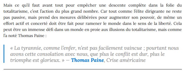 Peut-être devrions-nous lire ou relire Gustave Le Bon « Psychologie des foules ». Je souhaiterais comprendre en profondeur l’inaction des gens, ma compréhension actuelle n’est que partielle, suite aux multiples lectures et avis d’internautes, celle-ci repose essentiellement sur la peur et l’attente d’un sauveur, mais qui sait si ce n’est pas plus que cela qui empêche les êtres d’œuvrer en personne pour leur liberté.