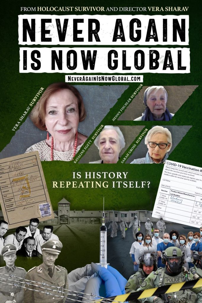 Sorti aux États-Unis le 30 janvier 2023, ce projet cinématographique ambitieux est l’oeuvre de Vera Sharav, une rescapée de l’Holocauste qui est aussi la fondatrice et présidente de l’Alliance pour la protection de la recherche humaine, une association qui promeut et défend le libre consentement en matière médicale. Depuis le début de la pandémie, cette extraordinaire lanceuse d’alerte n’a cessé d’attirer l’attention sur la dérive politique et sociale qui opère sous le couvert de l’urgence sanitaire. Au mois d’août 2022, son discours aux 75 ans de Nuremberg en Allemagne a fait l’objet de tentatives de censure et de menaces, face à un pouvoir qui rappelle de plus en plus les heures sombres de l’histoire.