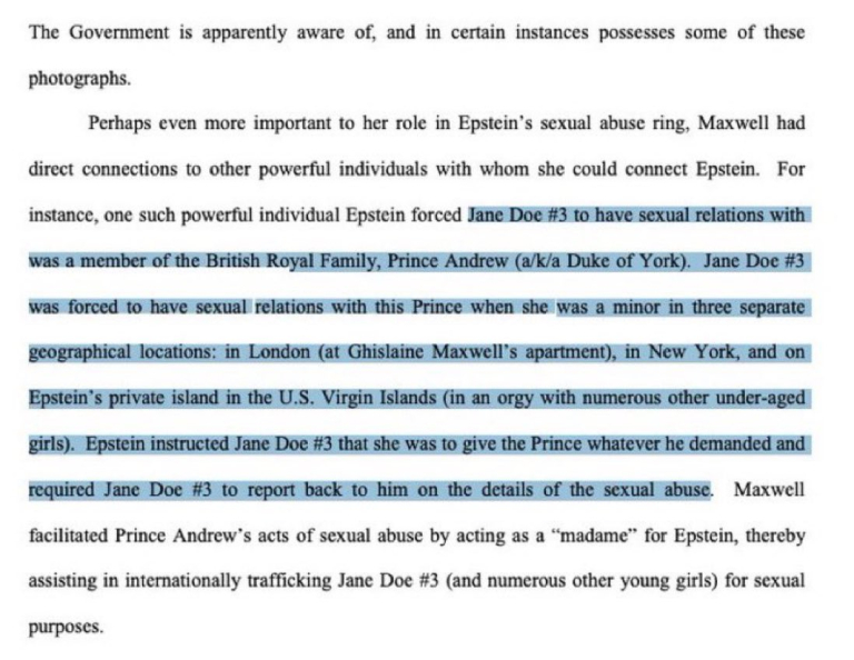 « Tu vois, baiser n’est pas un crime. Cela pourrait être embarrassant, mais ce n’est pas un crime », écrit Menashe dans le livre. « Mais baiser une fille de quatorze ans est un crime. Et il prenait des photos de politiciens en train de baiser des filles de quatorze ans – si vous voulez être clair… Ils [Epstein et Maxwell] faisaient chanter les gens comme ça. » Source