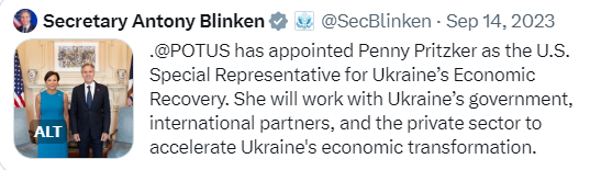 Pritzker est le président exécutif du milliardaire Hyatt Hotels et cousin de Penny Pritzker qui a été nommée par le président des États-Unis représentante spéciale pour la reprise économique de l’Ukraine.