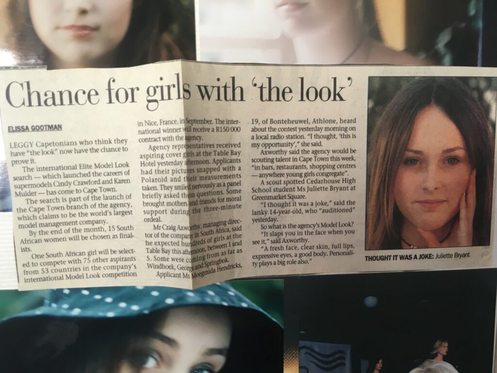 Juliette a poursuivi : « Je suis entrée dans la chambre d’hôtel, je me suis assise en face de lui, je lui ai donné mon livre de mannequin et il l’a feuilleté. Il m’a dit : « Wow, tu as la silhouette la plus incroyable que j’ai jamais vue dans ma vie. » Puis il a dit : « Bien, nous voulons vraiment t’emmener d’Afrique du Sud à New York. » Ils m’ont dit qu’ils allaient payer mon billet et m’obtenir un visa. Je pensais que ce serait l’occasion la plus extraordinaire de ma vie. Puis son bureau m’a téléphoné et m’a dit : « Fais tes valises, nous partons pour les Caraïbes ». J’ai pensé que c’était pour une séance photo. J’ai donc immédiatement dit oui. Son île était le plus bel endroit que j’aie jamais vu. La mer y est absolument exquise, la mer turquoise. »