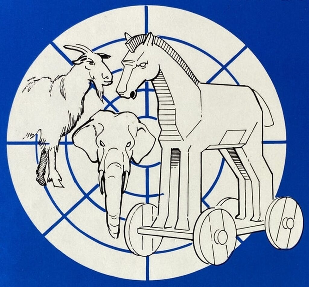 Le cheval de Troie était présenté comme une offrande de paix et de bonne volonté au peuple de Troie ; en réalité, il était chargé de guerriers athéniens déterminés à détruire Troie. La principale différence entre le cheval de Troie et l’ONU est que les Troyens ne savaient pas que le cheval contenait leurs ennemis ; l’ONU, en revanche, a été transportée à New York en sachant pertinemment que ses postes clés étaient contrôlés par des communistes et d’autres antiaméricains, et que l’immunité diplomatique offrirait à nos ennemis une base protégée pour leurs opérations à l’intérieur de nos frontières. Comme l’avait prévenu en 1971 le défunt directeur du FBI, J. Edgar Hoover :