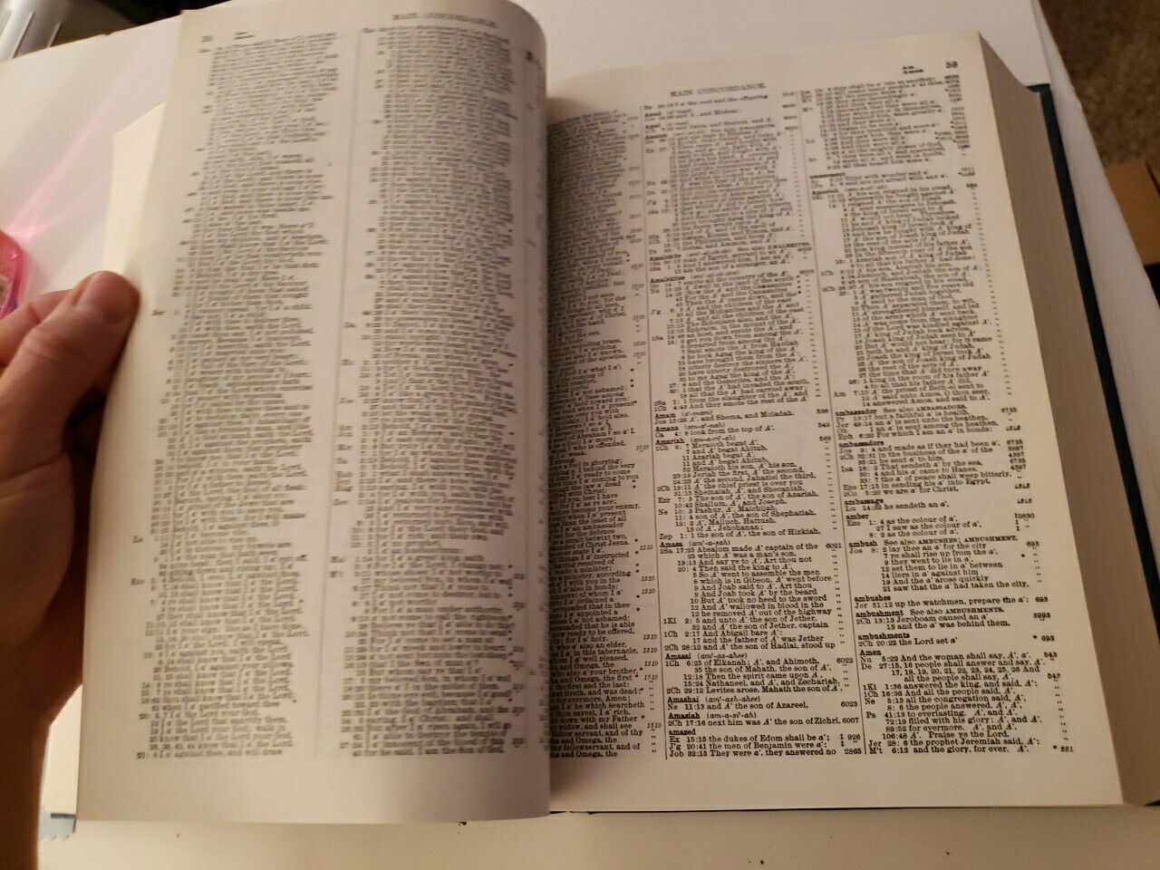 Après quelques mois à patienter, j’ai enfin fait l’acquisition de la Concordance exhaustive de la Bible (Strong’s Exhaustive Concordance of The Bible). Il s’agit d’un ouvrage de référence très volumineux de 1552 pages ayant une dimension de 28.7 cm x 5.08 cm x 22.35 cm (11.3″ x 2.0″ x 8.8″). Je l’ai obtenu pour un montant très modique de 13,00 $ (± 8.85 EUR), ce qui est pour le moins inespéré. La Concordance exhaustive de la Bible, généralement connue sous le nom de Concordance de Strong, est une concordance biblique, un index de chaque mot de la Bible du roi Jacques (King James Version en anglais, souvent abrégé KJV), construite sous la direction de James Strong. L’envie me prit de posséder cet ouvrage lors de la rédaction de mon article intitulé « L’Encyclopedia Americana décrit l’existence d’un dôme en Antarctique. Serait-ce la voûte céleste dont la ville de Chicago fit un clin d’œil en 1933 ? », publié le 6 août 2023. J’y écrivais par exemple :