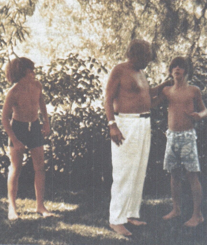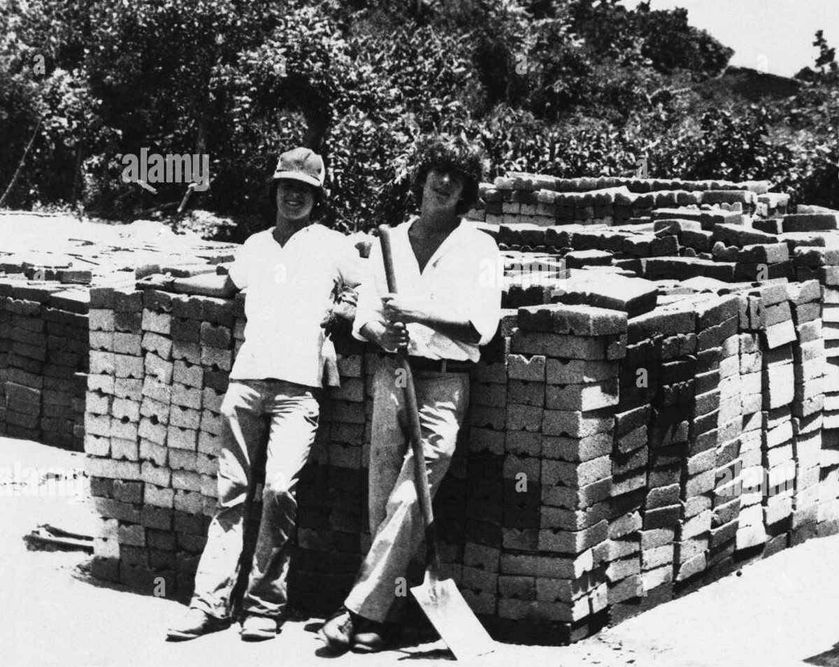La photo suivante a été prise lorsque John-John et moi étions à la fin de l’adolescence ou au début de la vingtaine. J’étais, encore une fois, sous MK et je ne me souviens pas des détails autres que le fait que nous faisions du bénévolat et, d’après mes souvenirs, c’était à Bullhead City. (Cependant, un article de journal indique que la photo a été prise à Rabinal, au Guatemala.) Je déplaçais des briques depuis trois jours et j’avais presque terminé le travail lorsque John-John est arrivé, et j’ai dit : « Oh, alors maintenant vous arrivez ici ! »
