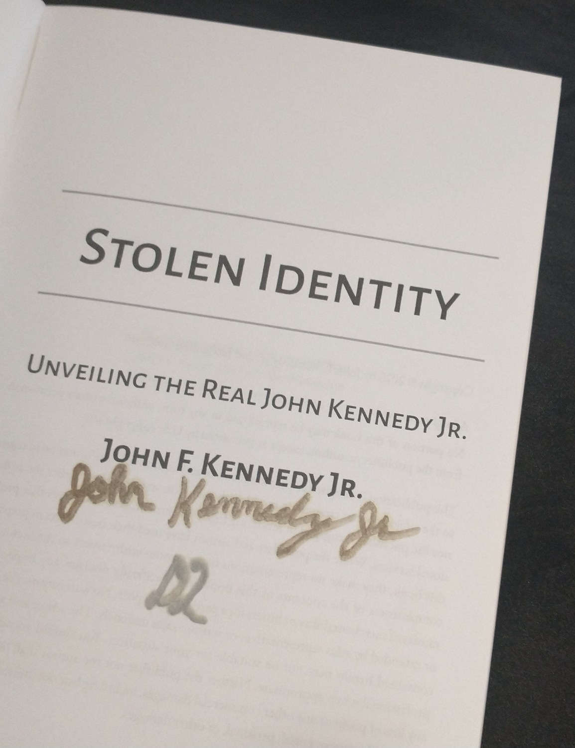 Je suis très heureux car le véritable John F. Kennedy Jr. (selon toute vraisemblance) a eu la très grande gentillesse de m’offrir son livre en cadeau. Voici ce qu’il m’écrit dans sa lettre manuscrite :