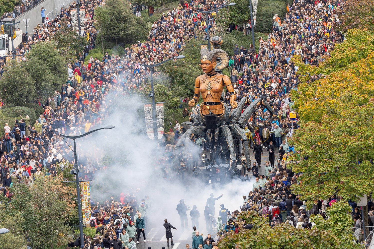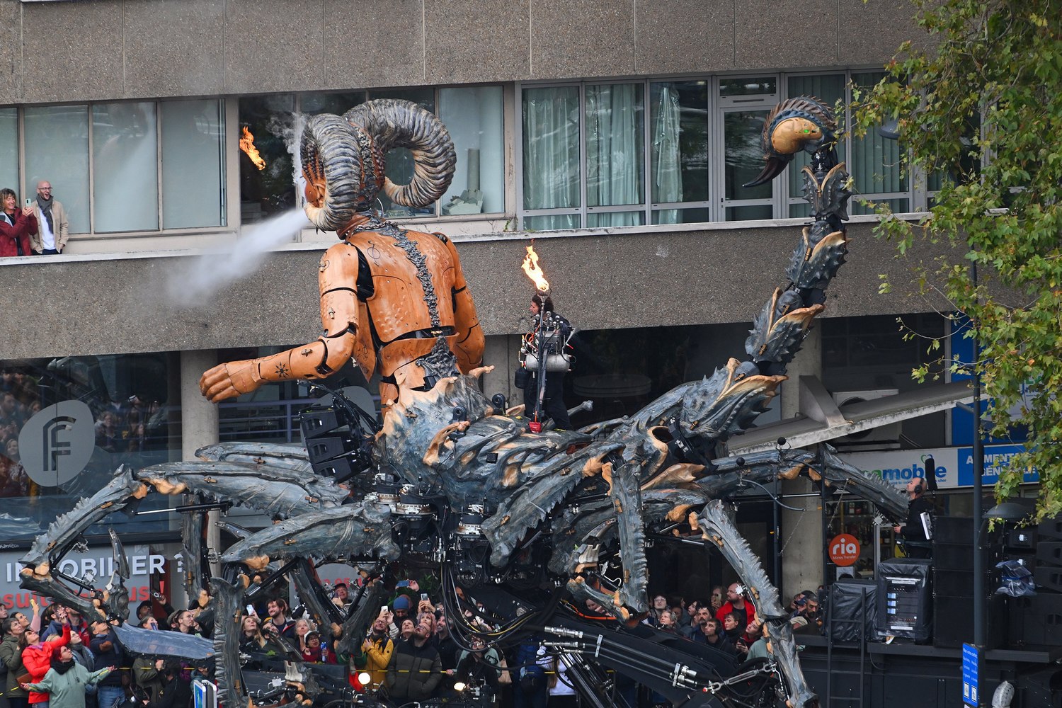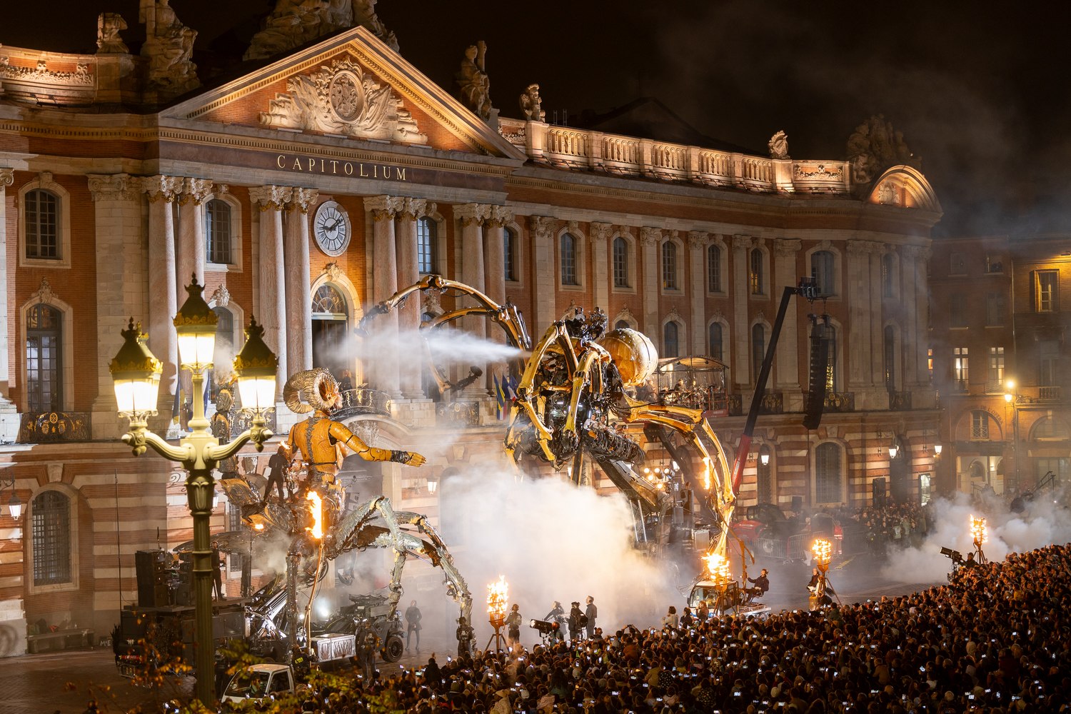 Le weekend dernier, du 25 au 27 octobre, eut lieu comme prévu l’opéra urbain “Le Gardien du Temple – La Porte des Ténèbres“ au centre-ville de Toulouse. Organisé par Toulouse Métropole et imaginé par François Delarozière et la compagnie La Machine, ce spectacle monumental faisait suite au premier volet du Gardien du Temple, qui s’était tenu à Toulouse en novembre 2018. Cet événement a vu le retour d’Astérion le Minotaure et d’Ariane la Grande Araignée, qui ont été rejoints dans leur périple par une nouvelle Machine, la chimère Lilith la Gardienne des Ténèbres.