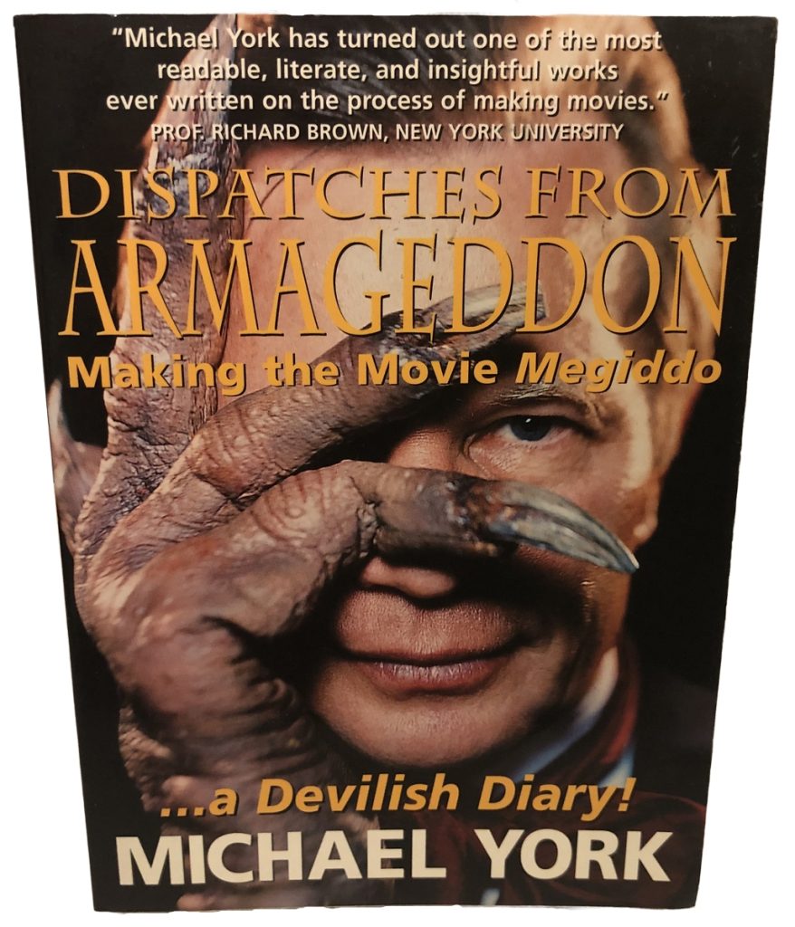 Le 2 novembre 2023, j’ai publié un article concernant “Megiddo: The Omega Code 2” (La Prophétie des ténèbres II), un film de science-fiction et d’aventure religieuse de 2001, réalisé par Brian Trenchard-Smith et mettant en vedette Michael York, Michael Biehn, Diane Venora, R. Lee Ermey, Udo Kier et Franco Nero. Il s’agit d’une suite au film de 1999, “The Omega Code”, servant en partie de préquelle et en partie de récit alternatif du premier film. Son budget était nettement plus important (20 millions de dollars) que son prédécesseur (7,6 millions de dollars). Un peu plus de cinq mois après avoir publié mon article, j’ai décidé d’acheter le livre de l’acteur principal Michael York dans lequel il détaille la réalisation du film. Ce livre s’intitule “Dispatches from Armageddon: Making the Movie Megiddo …a Devilish Diary!” (Dépêches d’Armageddon : Faire du film Megiddo… un journal diabolique !)