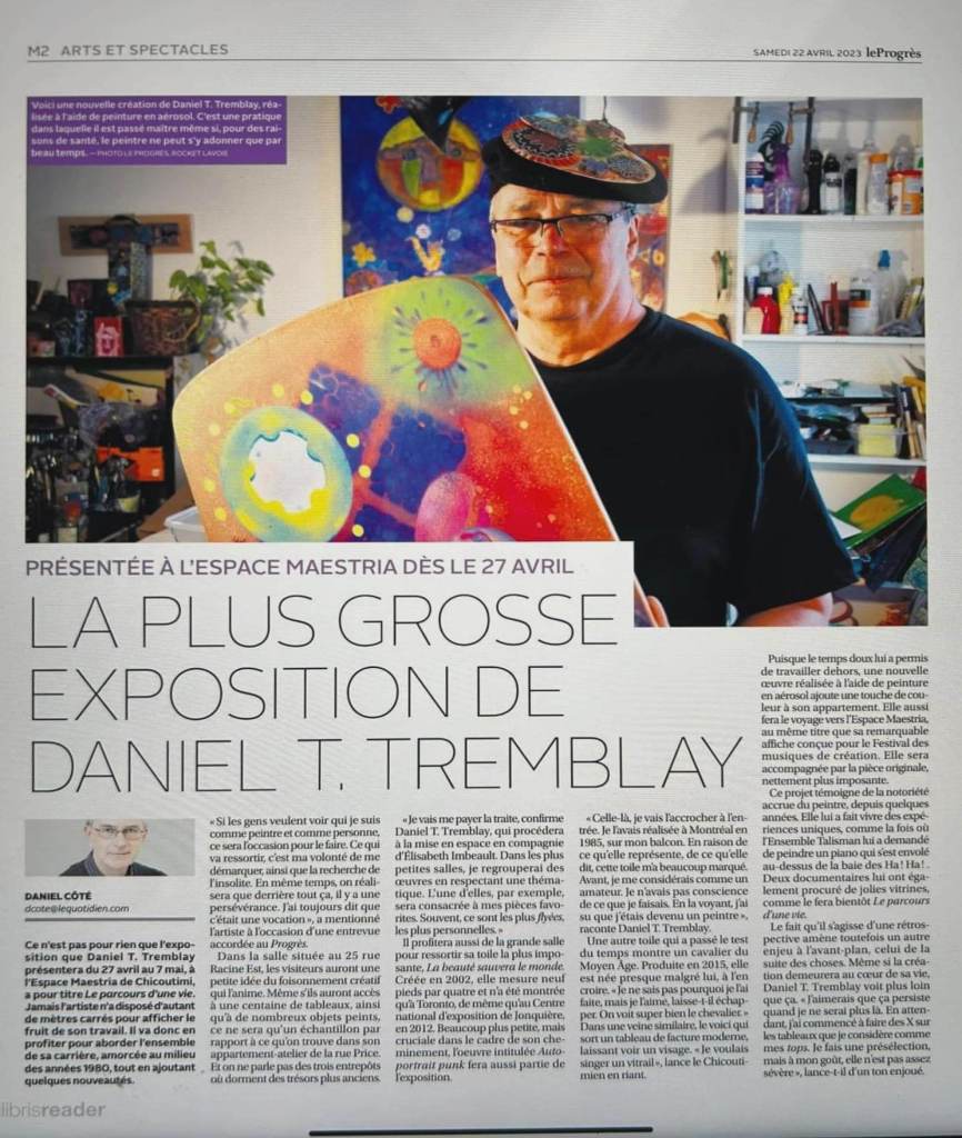 Je souhaite maintenant vous faire découvrir le travail de Daniel T. Tremblay en partageant avec vous deux articles de Daniel Côté, journaliste aux arts et éditorialiste au journal Le Quotidien.