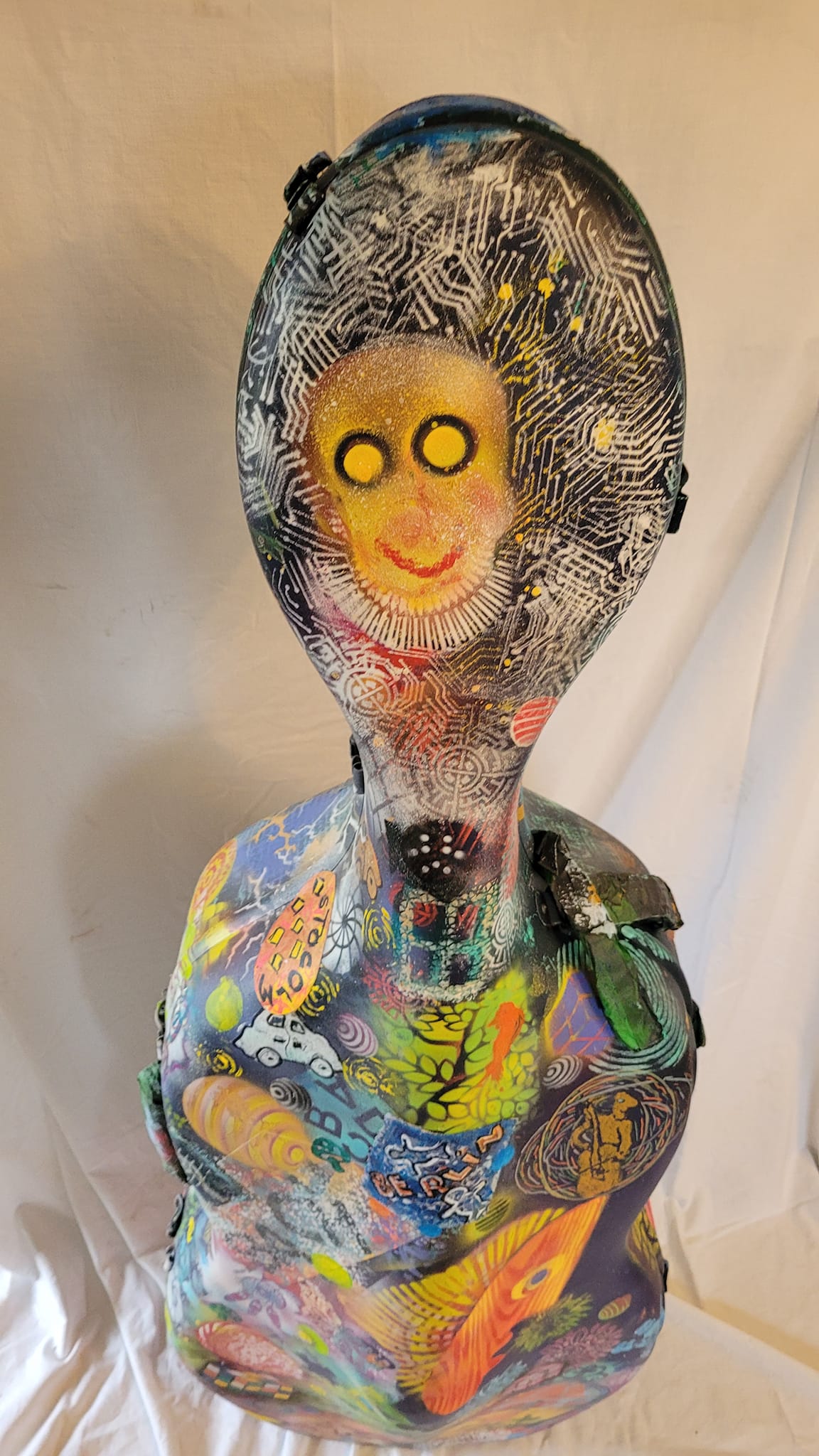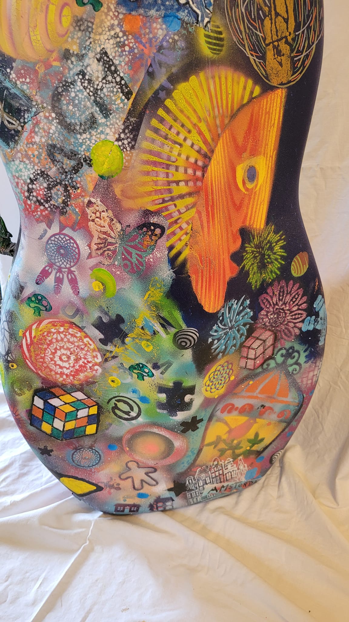 Je suis devenu un peintre d’objets, laisse échapper Daniel T. Tremblay, au fil de la conversation. Plus que jamais, en effet, l’artiste chicoutimien est stimulé par le défi que posent les formats non traditionnels. Pour le constater, il a suffi d’examiner sa production récente, celle qui fut en vedette le 16 août 2022 dans son appartement situé au 30 rue Price Est, à Chicoutimi. Il s’agissait de sa sixième journée portes ouvertes et, tradition oblige, elle coïncidait avec son anniversaire. « J’aurai 66 ans » [en 2022], révèle le principal intéressé, qui a l’habitude d’accueillir une cinquantaine de personnes à cette occasion.