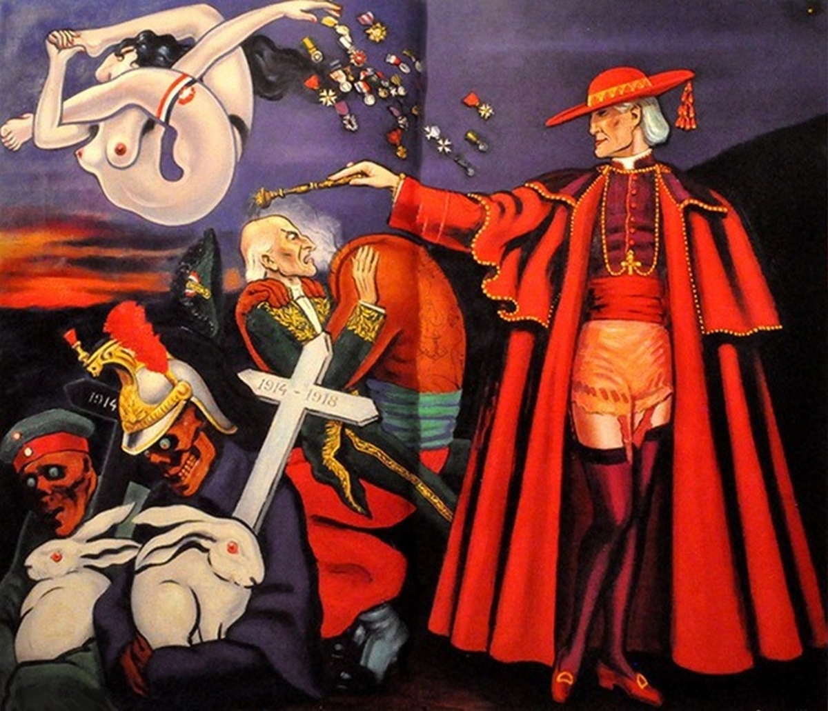 Un de mes peintres préférés est Clovis Trouille, un peintre français trop méconnu et génial qui a réussi à survivre aux tranchées de la 1ère guerre mondiale et qui en était ressorti anti-tout. Signataire du dernier manifeste surréaliste, il se définissait comme hyperréaliste. Au niveau de son style, je dirais que sa peinture est un mélange d’art naïf et de surréalisme.