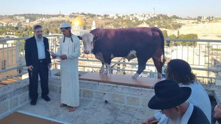 - Un groupe d’Israéliens religieux fanatiques a été photographié en train de pratiquer le rituel de la génisse rousse devant la mosquée Al-Aqsa