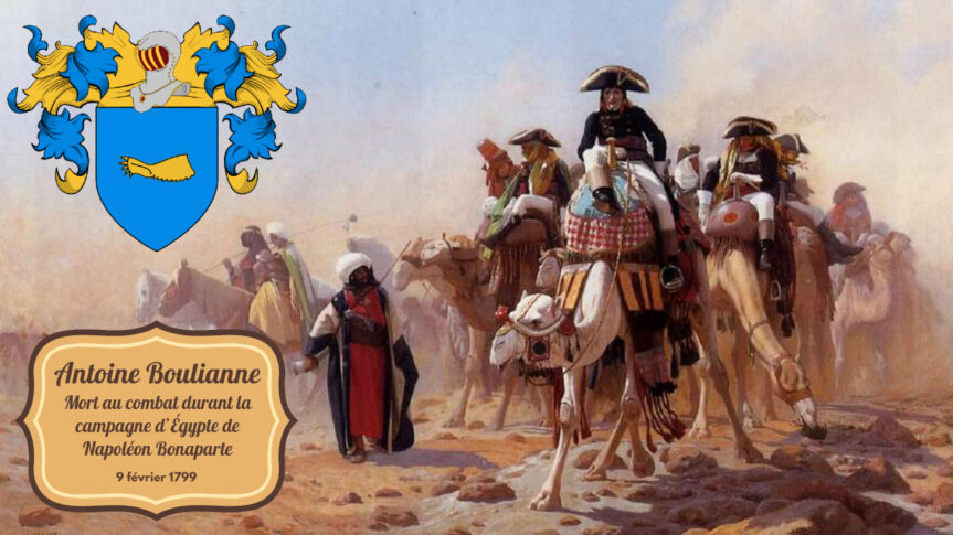 - Antoine Boulianne, mort au combat durant la campagne d’Égypte, mérita la réputation de l’un des plus intrépides soldats de l’armée (1799)