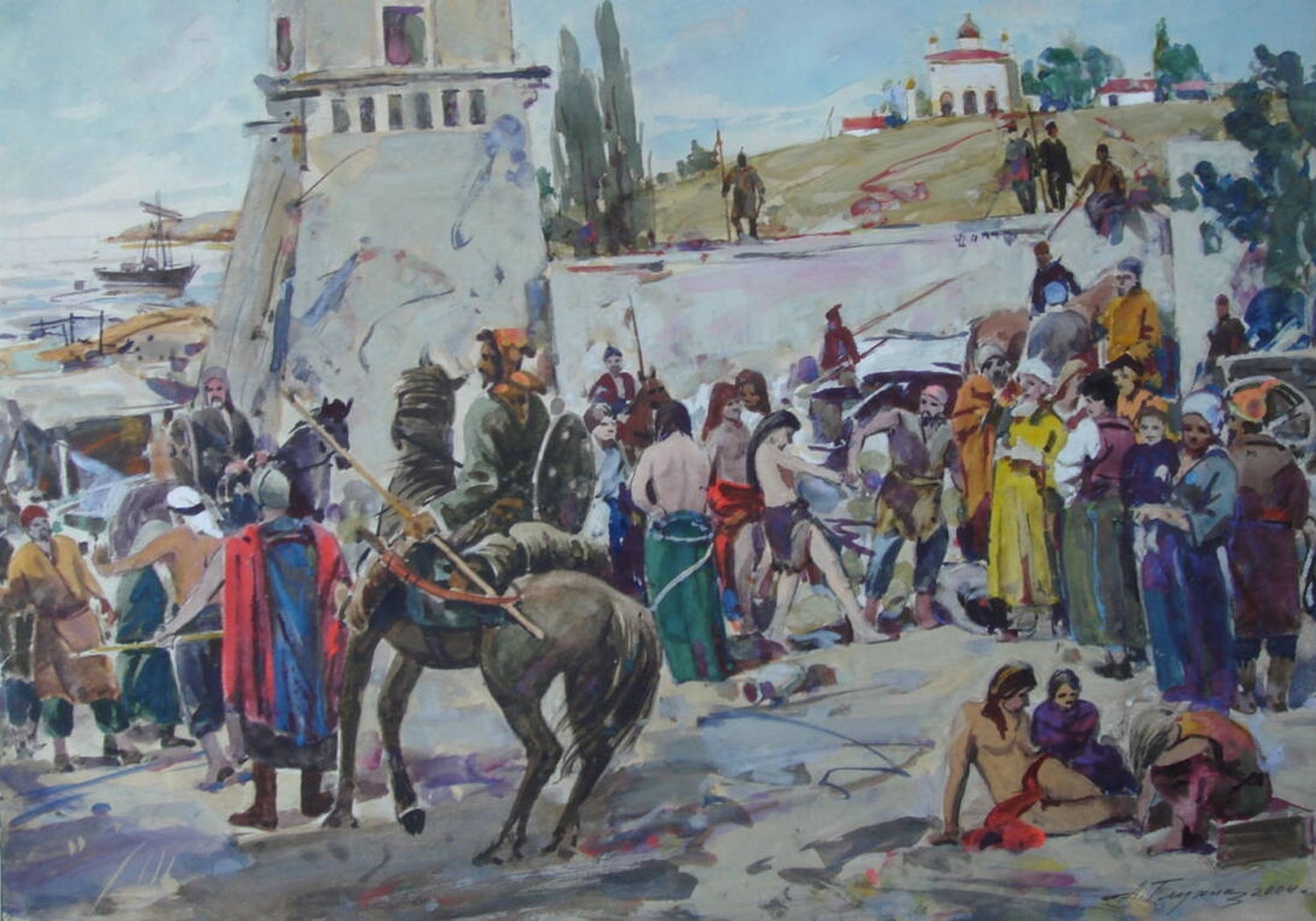 Les Juifs continuèrent d’acheter des captifs slaves, non plus aux Khazars, mais d’abord aux Petchénègues, puis aux Polovtsiens. Les modalités de ce commerce nous sont connues grâce au sermon 16 du Patericon de Kiev-Petchersk. Ce texte relate le sort d’un moine de Petchersk, saint Eustrate des Grottes (Eustratiy le Jeûneur), qui, en 1097, fut capturé avec d’autres moines et ouvriers du monastère par les Polovtsiens lors d’un raid aux abords de Kiev. Les Polovtsiens emmenèrent les captifs à Kherson, en Crimée, où ils furent vendus à un marchand d’esclaves juif. Ce dernier commença à les contraindre à renoncer au christianisme. Finalement, ils moururent tous de faim, refusant la nourriture juive, et Eustratius fut crucifié par un Juif furieux de son obstination. D’après les informations contenues dans la Parole, il est clair que les habitants grecs de Kherson n’achetaient pas leurs coreligionnaires orthodoxes. L’achat d’esclaves humains était la responsabilité exclusive des Juifs, qui se rendaient chaque année à Cherson précisément à cette fin. Le désir d’un Juif achetant des captifs polovtsiens de les contraindre à renoncer au christianisme est compréhensible : comme mentionné précédemment, la loi grecque interdisait formellement aux Juifs de posséder des esclaves chrétiens.