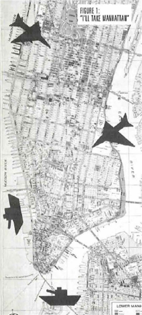 À mon avis, la frappe aérienne de Trump bombardera les héliports de l’Est et de l’Ouest, tandis que le Trump Princess et ses navires d’escorte bloqueront les fleuves East et Hudson pour empêcher toute intervention de la Marine et/ou des Garde-côtes.