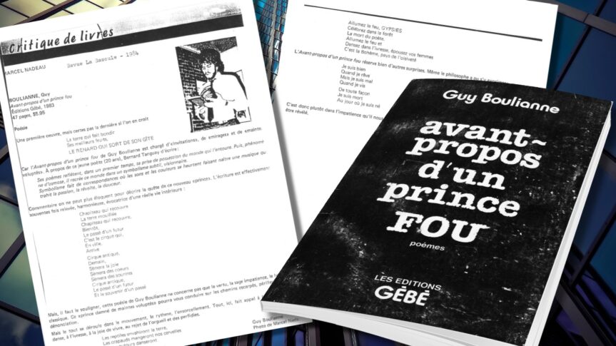 Débuts et Poésie : Guy Boulianne a fait ses débuts dans le monde littéraire en 1983 avec la publication de son premier recueil de poésie, intitulé “Avant-propos d’un prince fou”. Quatre ans plus tard, en 1987, il publie un second recueil, “La bataille des saints”. Ces œuvres montrent son engagement précoce dans l’art et la culture québécois.
