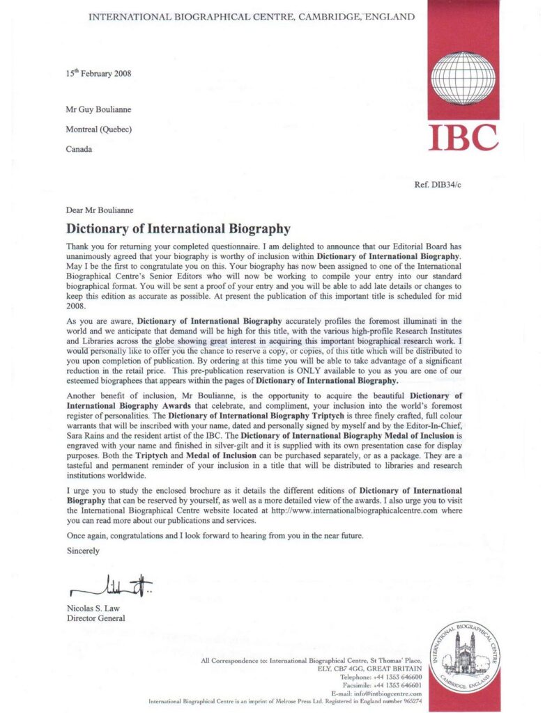 - Sous l’égide de Réginald Hamel, le nom de Guy Boulianne est publié dans le Dictionnaire des poètes d’ici de 1606 à nos jours (éditions Guérin)