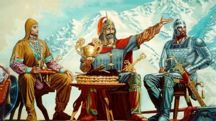 - Le héros nart, Wastirdzhi, identifié à saint Georges, médiateur entre Dieu et le peupleDans le cadre de ma série d’articles au sujet de l’Ossétie du Nord et du Sud-Alanie, je vais maintenant vous parler d’un superbe monument qui se trouve dans les gorges d’Alaguir, en Ossétie. Il s’agit d’une gigantesque statue qui s’appelle « Georges le victorieux saute hors du rocher » (Георгий Победоносец выскакивает из скалы). Depuis Alaguir (Алагир), … Continuer la lecture Le héros nart, Wastirdzhi, identifié à saint Georges, médiateur entre Dieu et le peuple