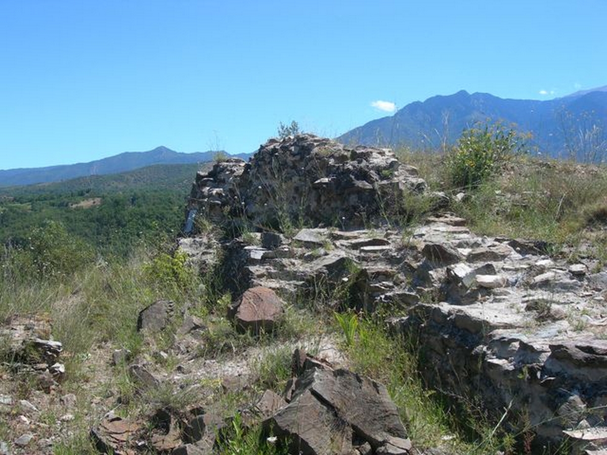 Pour protéger la vallée de la Têt, où se trouvait cette abbaye, le comte de Cerdagne fit construire un château à Ria destiné à en verrouiller l’accès, château qu’il occupa. Sa première mention date de 855, Ria (sous la forme « Arria ») est cité en tant que possession de la puissante et toute jeune abbaye St Michel de Cuxa. Il a été construit sur le pic rocheux à 440m d’altitude, qui était le site d’un ancien château wisigothique des Ve et VIe siècle, lui-même construit sur l’emplacement d’une ancienne tour de surveillance romaine de la Via Confluentana (-118 avant JC).